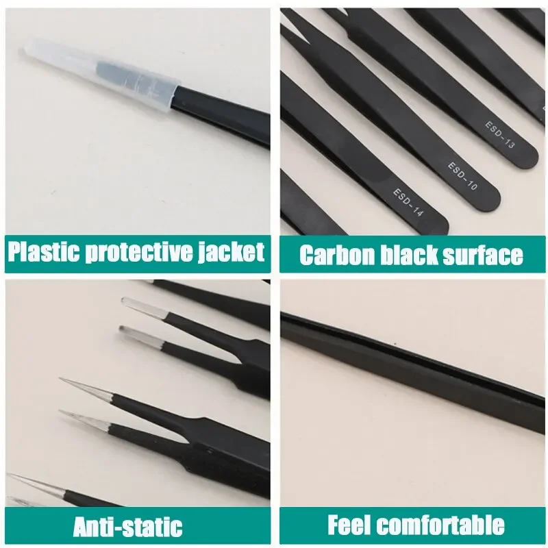 مجموعة ملاقط دقيقة من الفولاذ المقاوم للصدأ مقاومة للساكنة أدوات إصلاح لملاقط إصلاح الإلكترونيات حرفة لحام