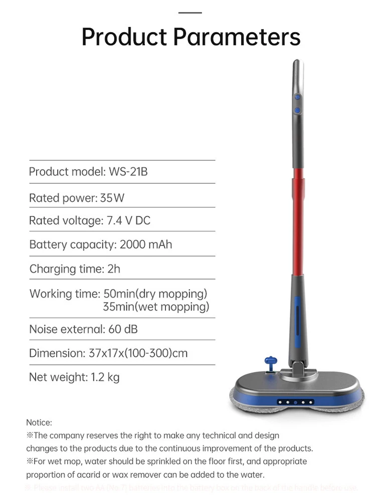 ممسحة أرضية كهربائية مع أجهزة خرقة ، ممسحة مبللة وجافة ، ملحقات تنظيف ، خزان مياه