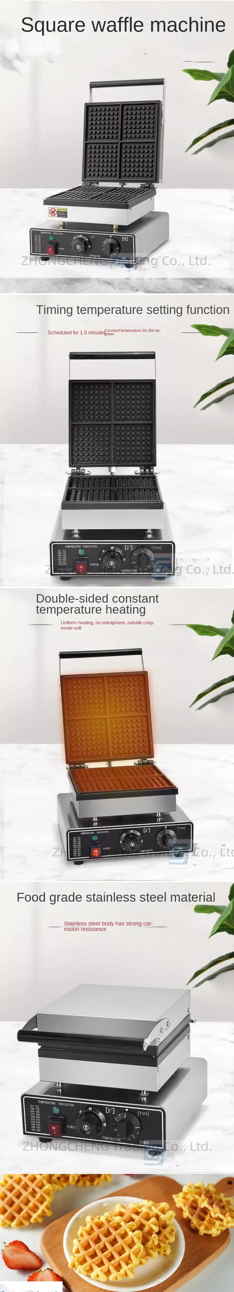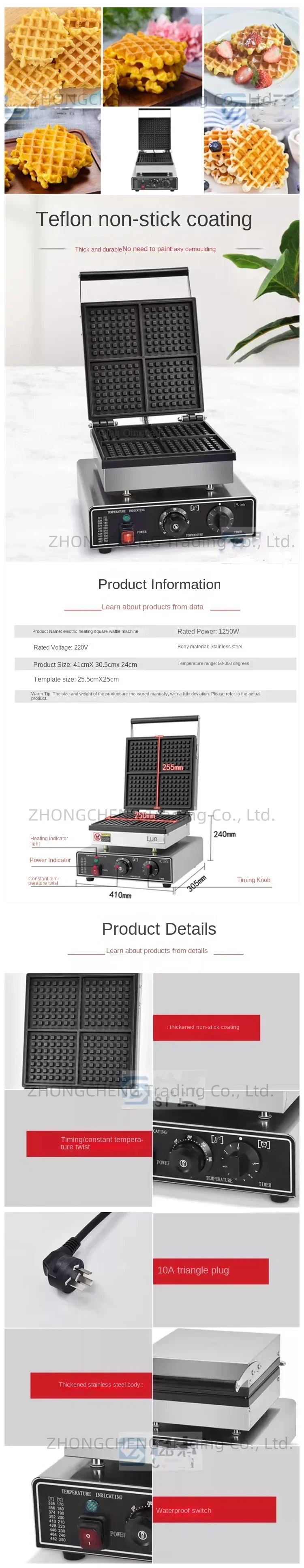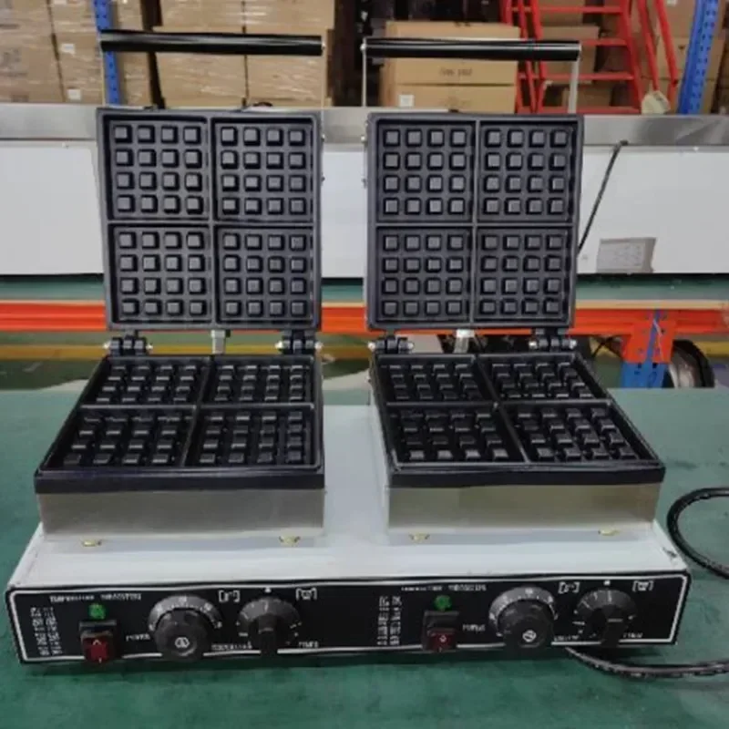 موقد كهربائي دوار لصنع الوافل ، متجر شاي الحليب ، صانع الكعك ، كعكة مربعة منقوشة