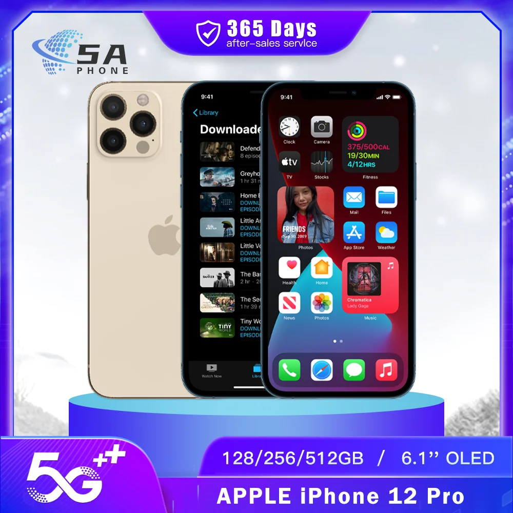 هاتف Apple-iPhone 12 Pro المحمول ، غير مقفل ، 5G ، معرف الوجه ، GB ، GB ، GB ROM ، GB ROM ، شاشة OLED ، A14 ، Hexa-Core ، أصلي