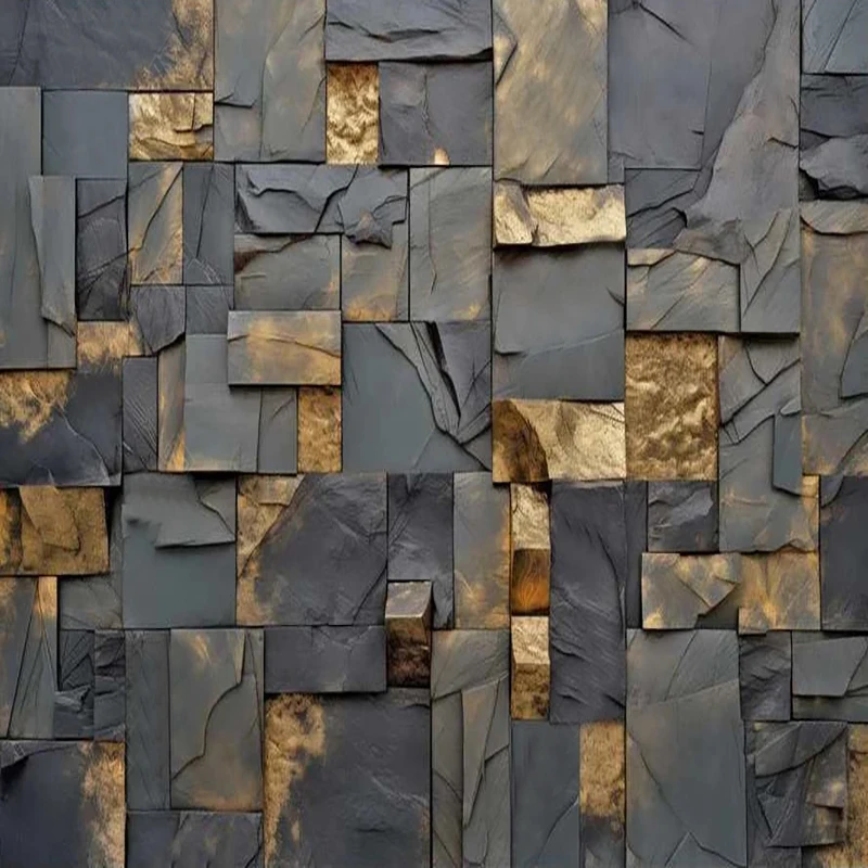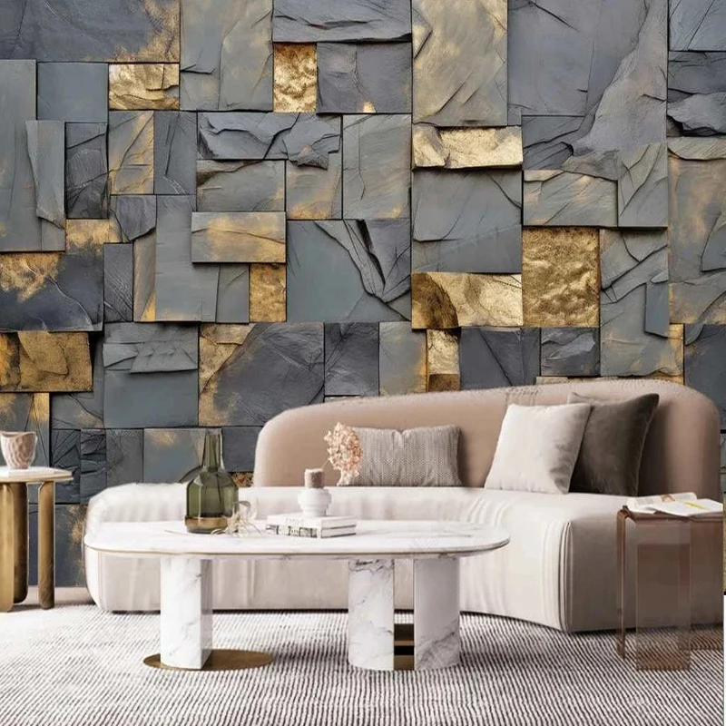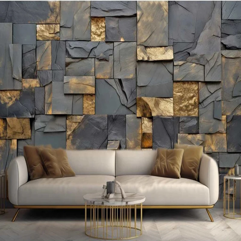 ورق حائط بصور مخصصة لديكور المنزل ، ملصق ثلاثي الأبعاد ، جدارية ، حائط خلفية ، ورقة ذهبية ، فن صخري ، غرفة معيشة ، تلفزيون ، أريكة ، غرفة نوم ، حديث ، بسيط