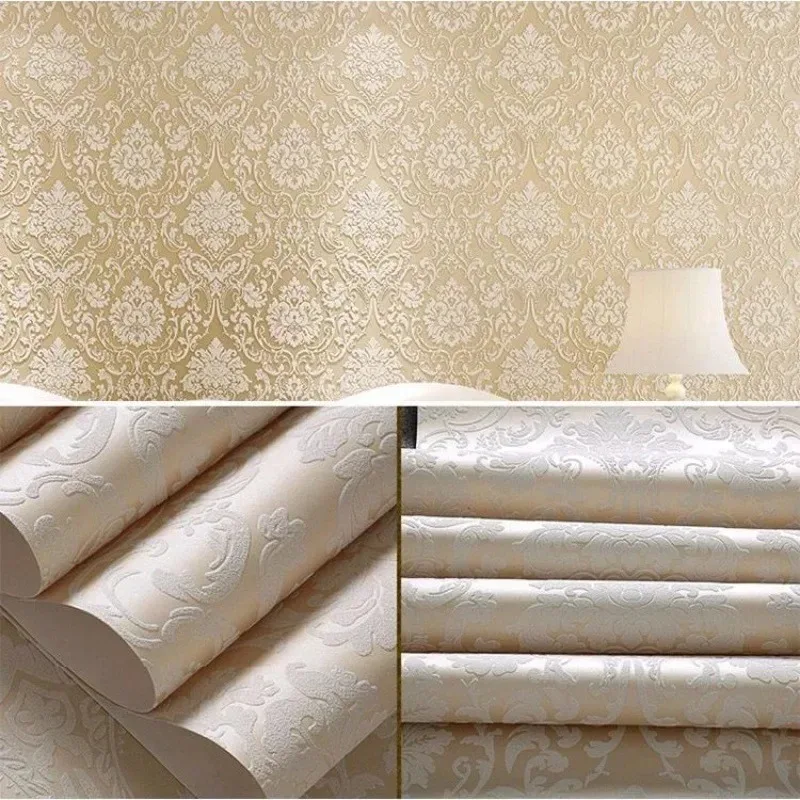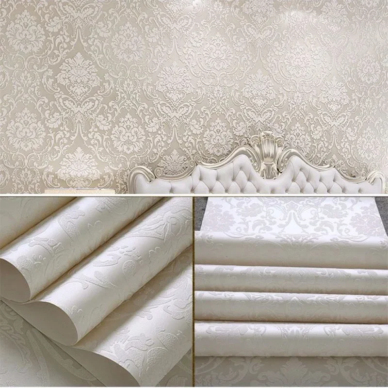 ورق حائط لاصق ذاتي أبيض منقوش دمشقي ورق حائط لاصق بلون سادة عادي ورق حائط دمشقي لغرفة النوم وغرفة المعيشة