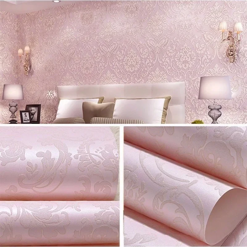 ورق حائط دمشقي منقوش ذاتي اللصق ، لون سادة عادي ، قشر وعصا ، ديكور غرفة النوم وغرفة المعيشة ، ورق حائط أبيض