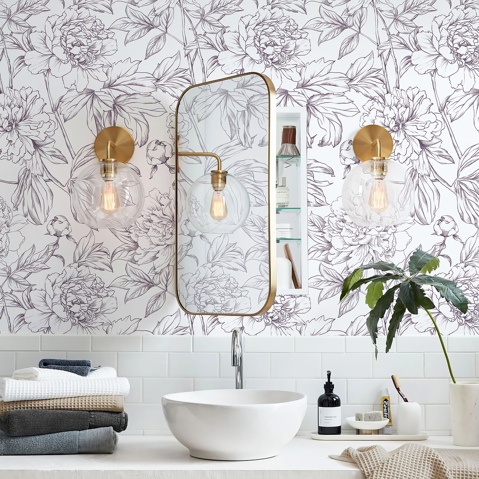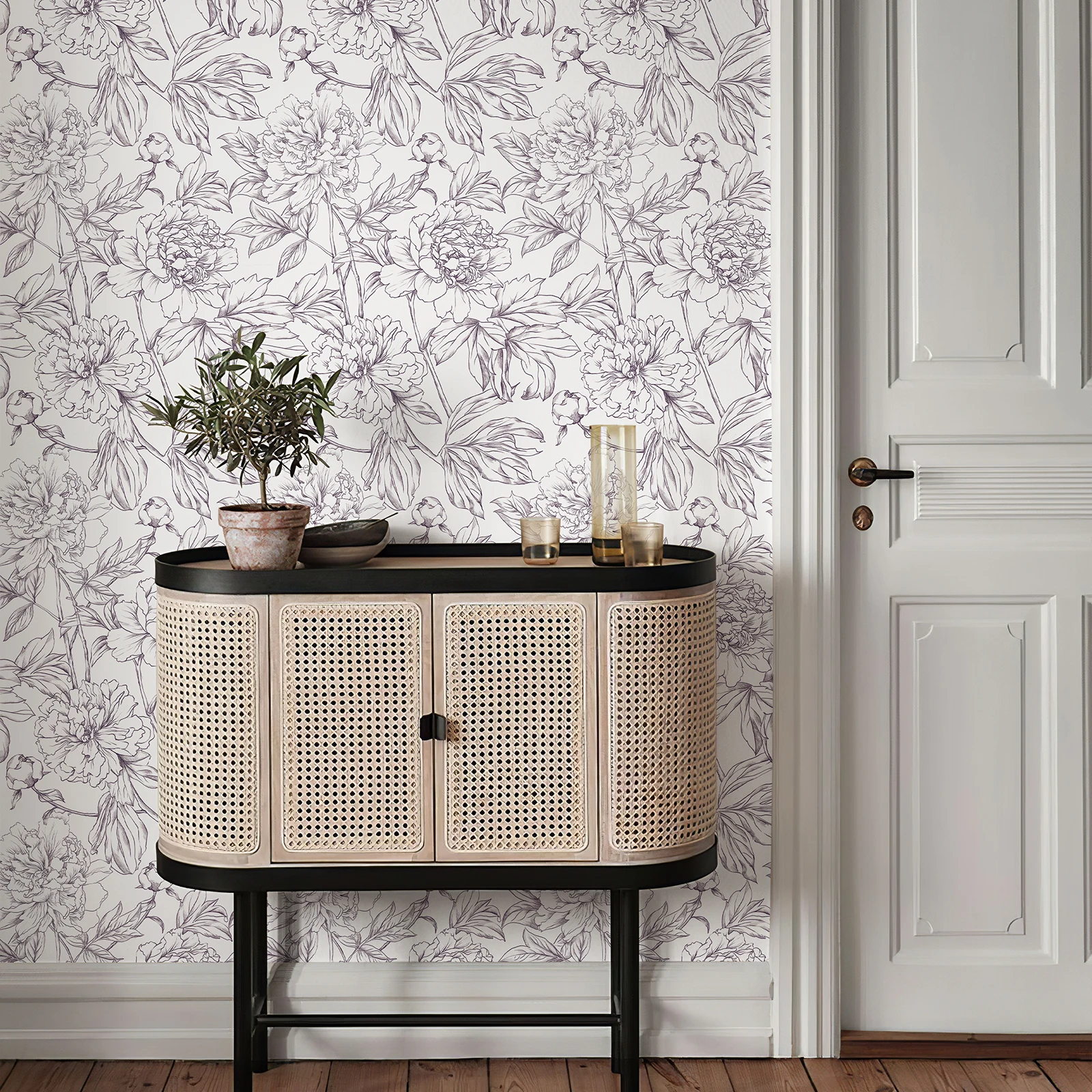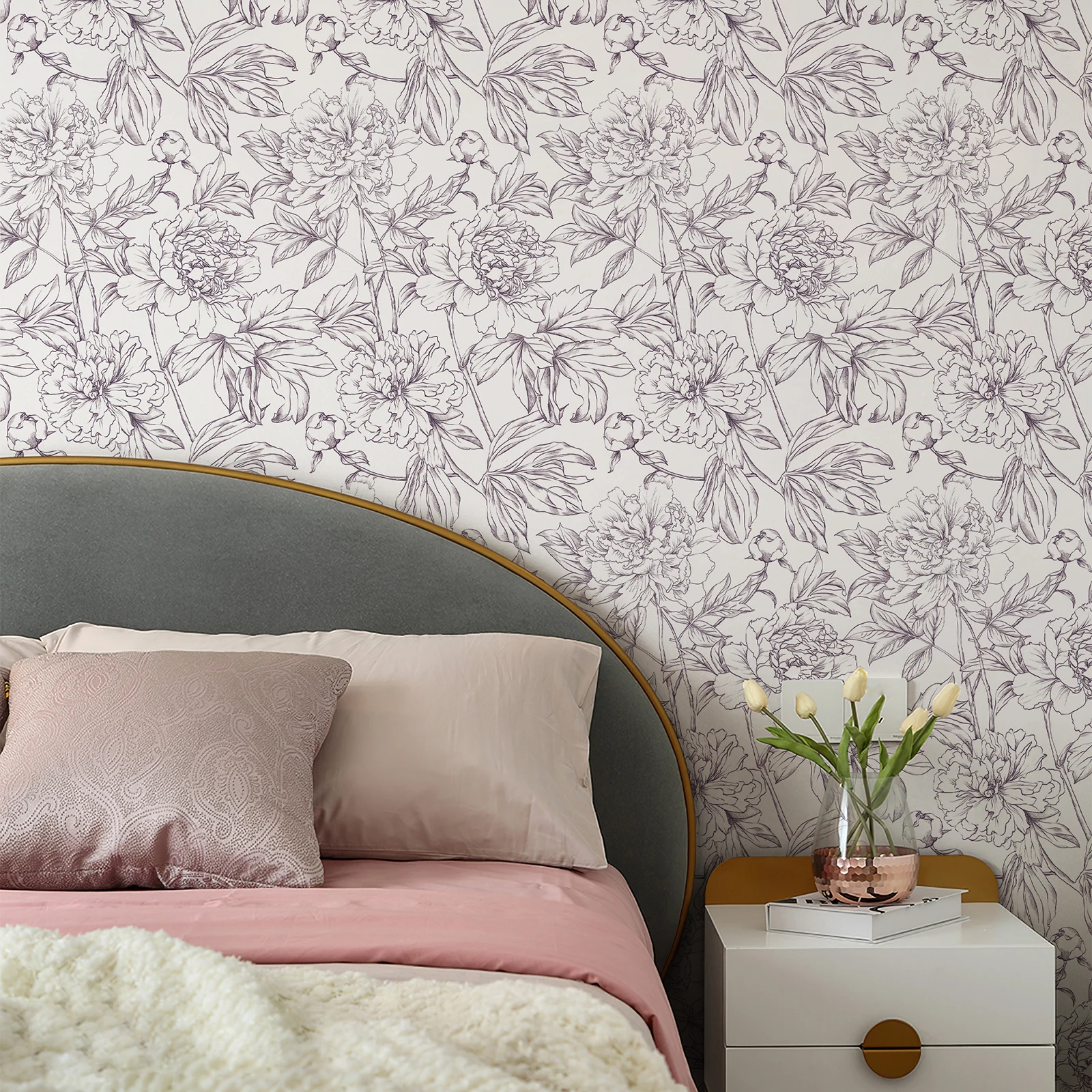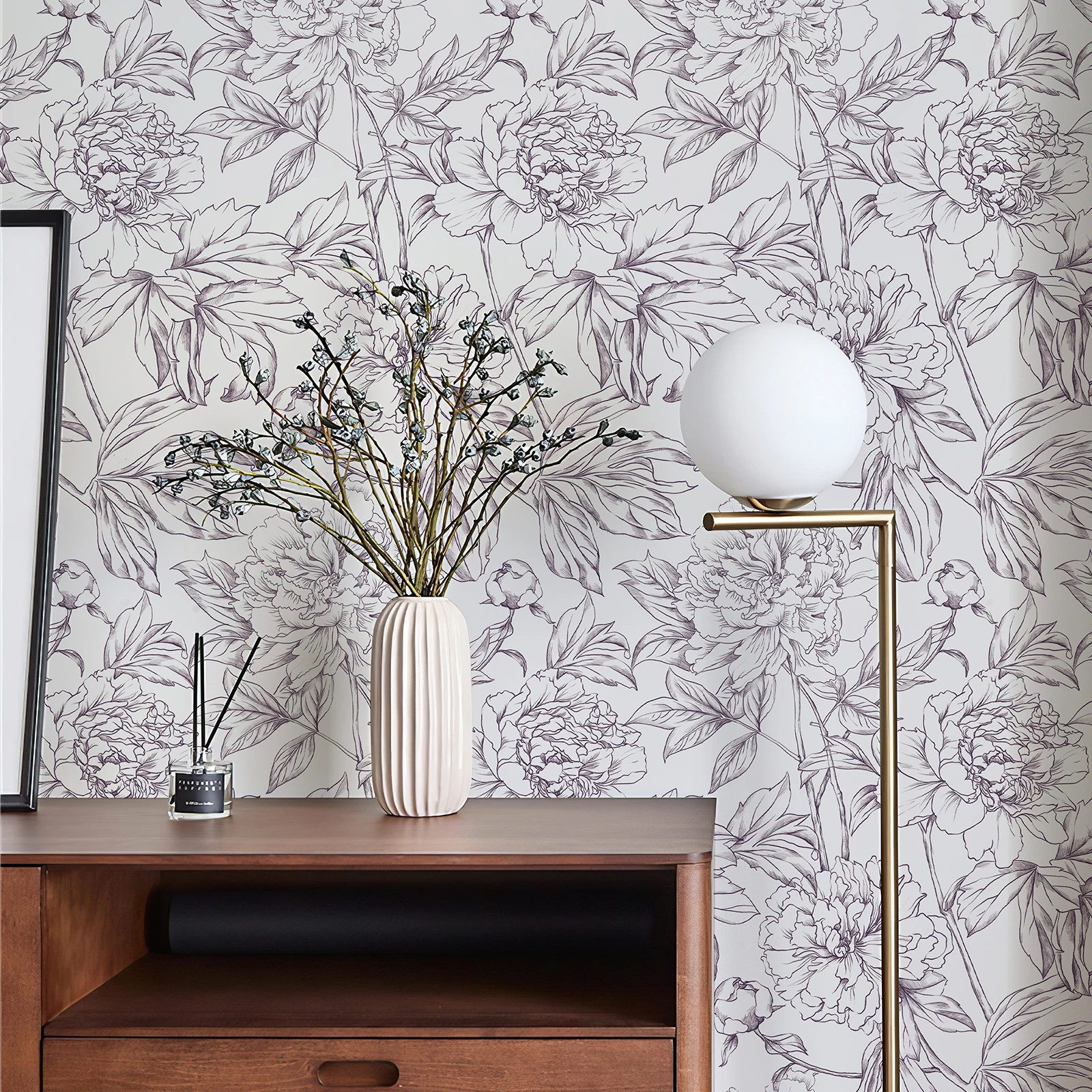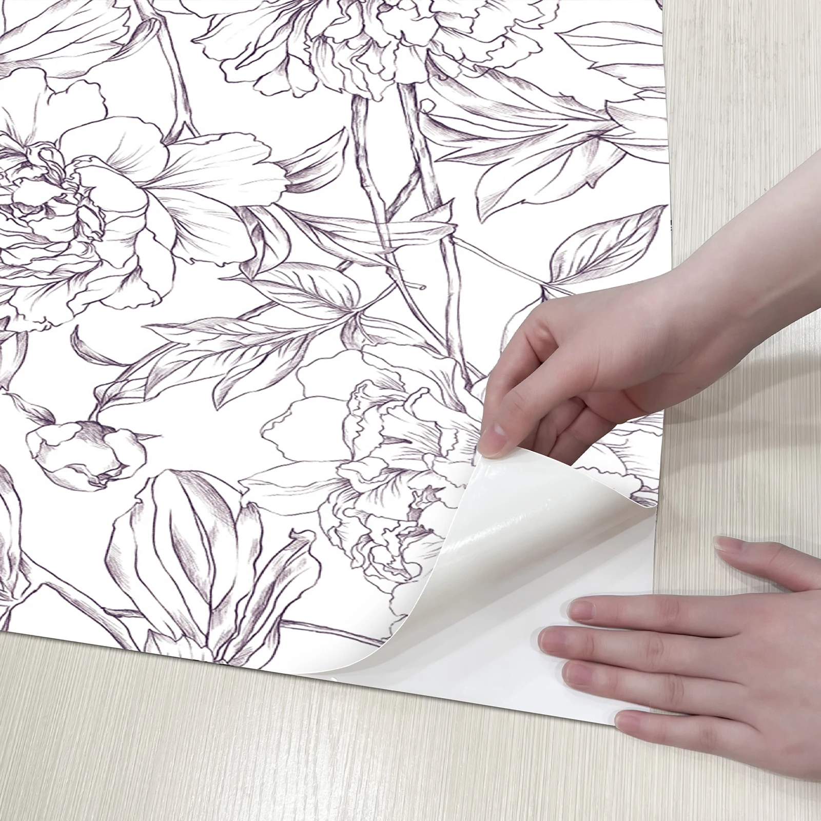 ورق حائط زهري لديكور الحائط ، قشر وعصا ، ملصق مقاوم للماء ، ذاتي اللصق ، أنيق ، خط رسم أرجواني ، بولي كلوريد الفينيل ، زهرة ، خزانة