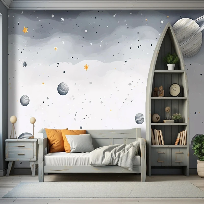 ورق حائط كرتوني ثلاثي الأبعاد مخصص ، سماء مرصعة بالنمي ، خلفية داخلية ، لوحة جدارية ، غرفة أطفال ، لوحة كونية لرياض الأطفال