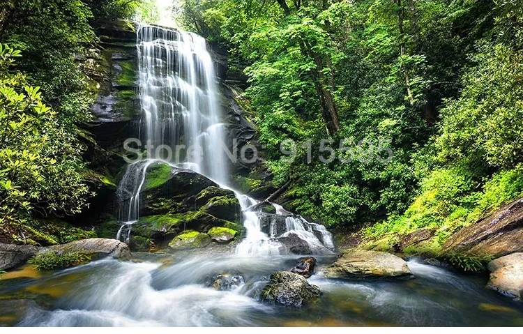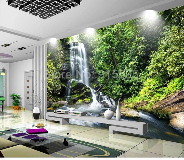 ورق حائط مخصص ثلاثي الأبعاد لشلال الغابات الخضراء ، ورق حائط لغرفة المعيشة ، غرفة النوم ، الأريكة ، التلفزيون ، المناظر الطبيعية ، ورق الحائط للصور