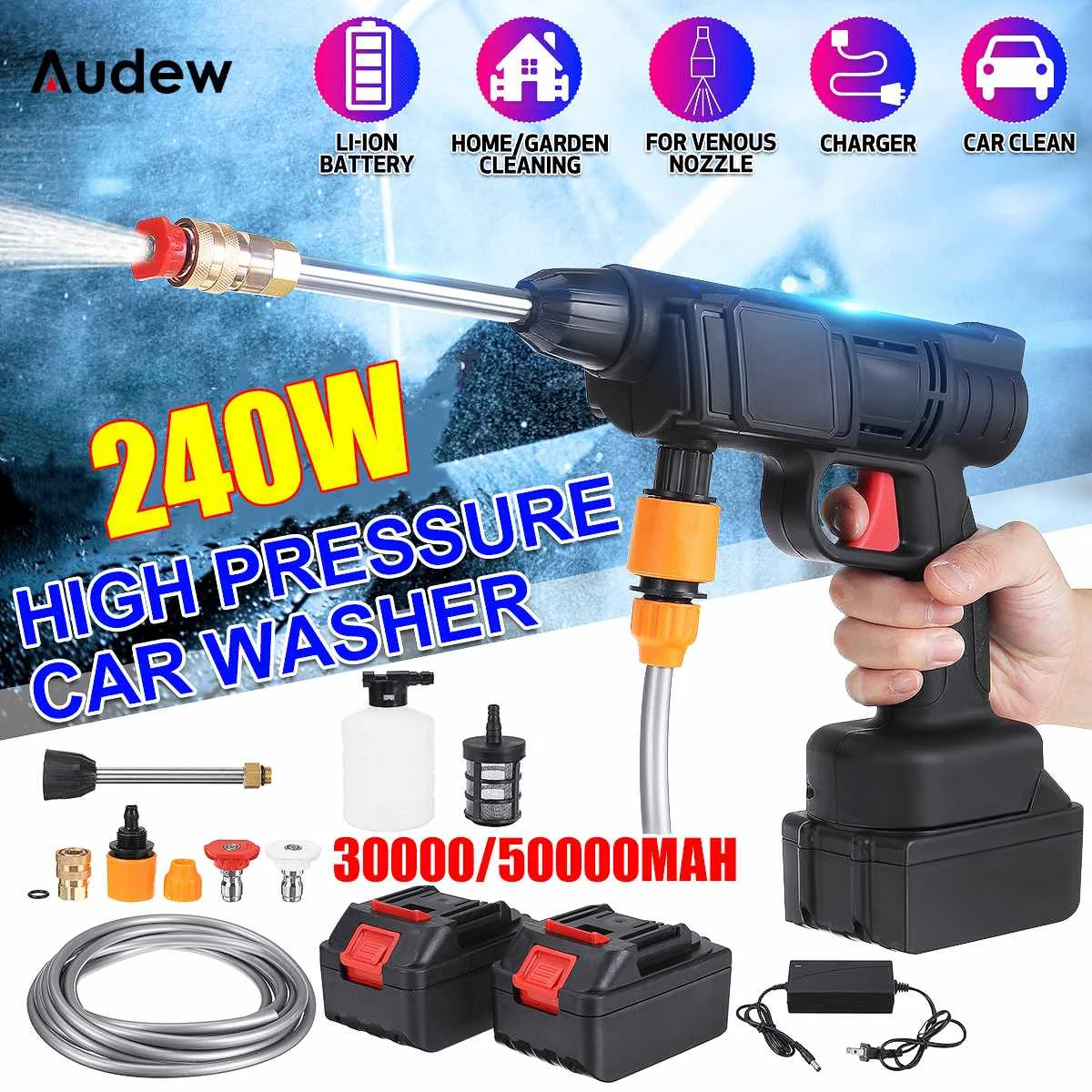 45Bar اللاسلكي ارتفاع ضغط آلة غسل سيارات رش مدفع المياه المحمولة سيارة كهربائية غسل الضغط تنظيف حديقة آلة الري