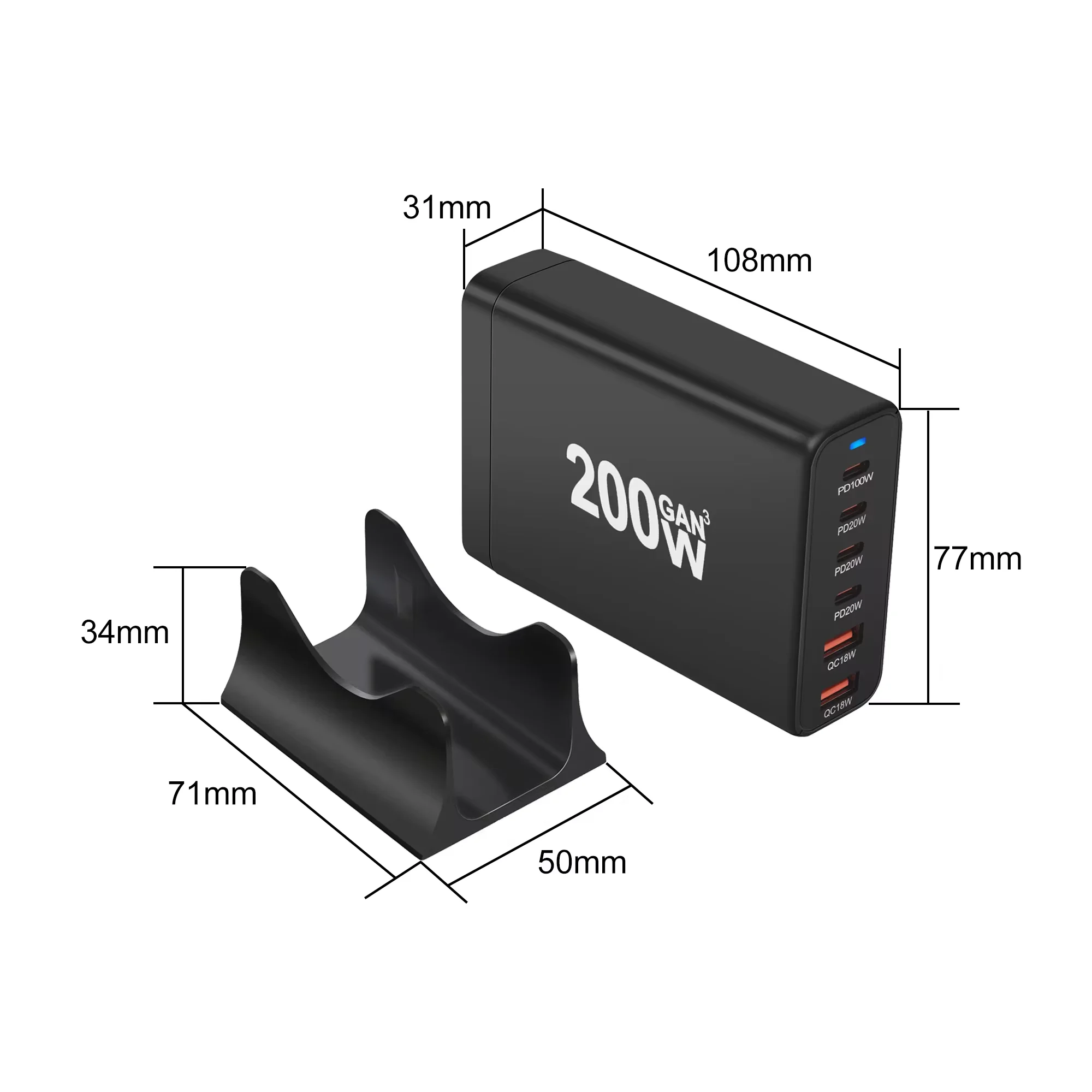 GaN USB Type C PD محطة شحن ، شحن سريع ، هاتف محمول ، 6 منافذ ، W W