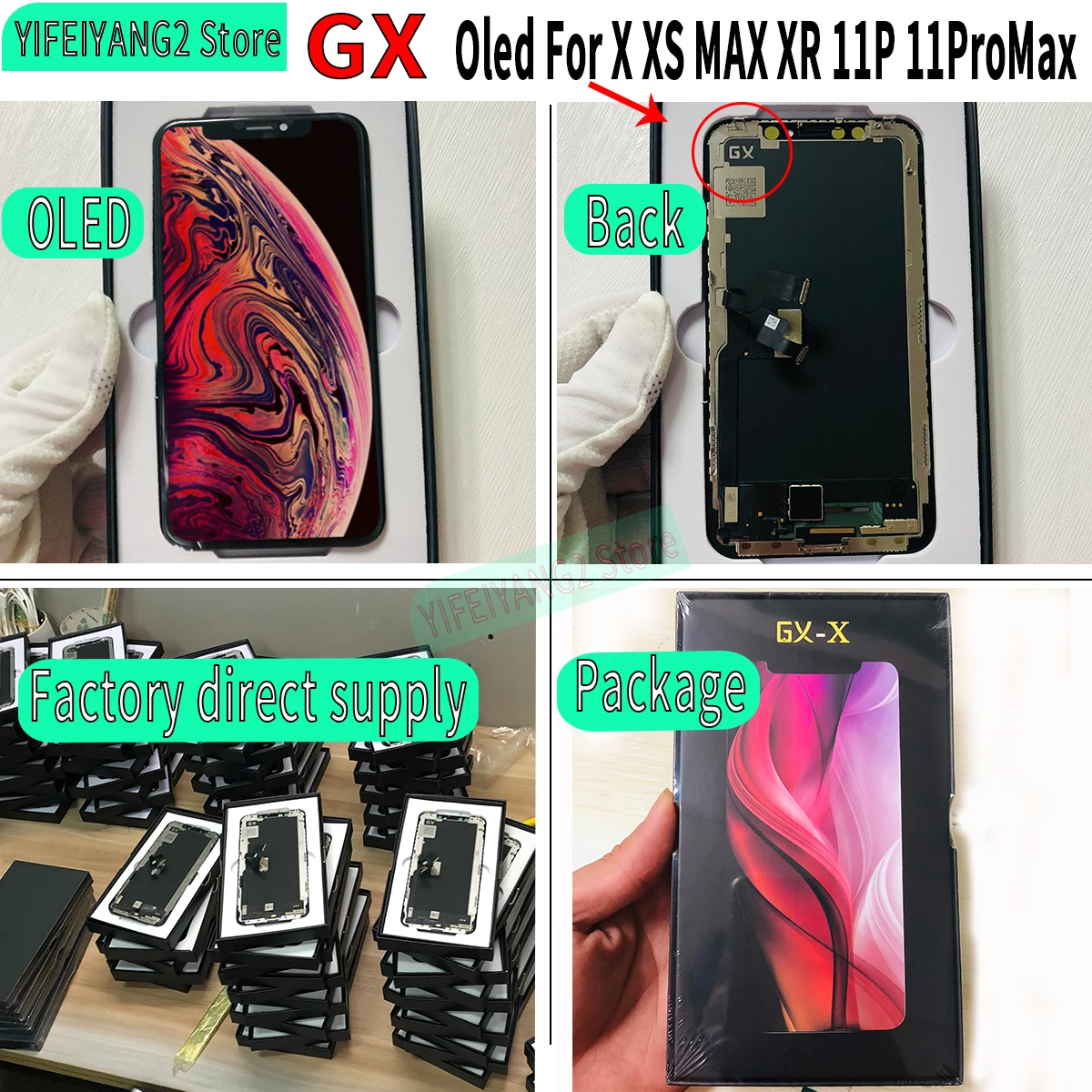 شاشة GX OLED لهاتف iPhone X 11 شاشة LCD تعمل باللمس مجموعة محول الأرقام لهاتف IPhone XS 12 Pro xssmax XR 12 13 قطع غيار Repiar