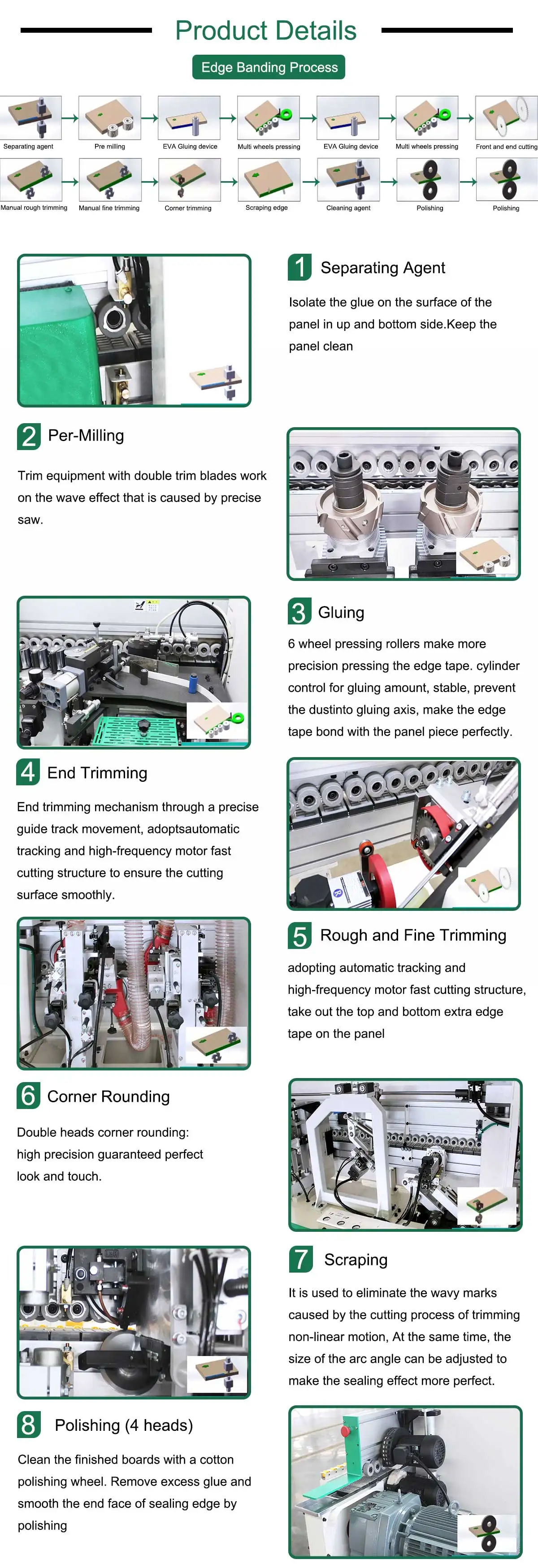 آلة ربط الحافة الأوتوماتيكية ، تدوير الزاوية قبل الطحن ، الأثاث الخشبي ، بولي كلوريد الفينيل ، ABS
