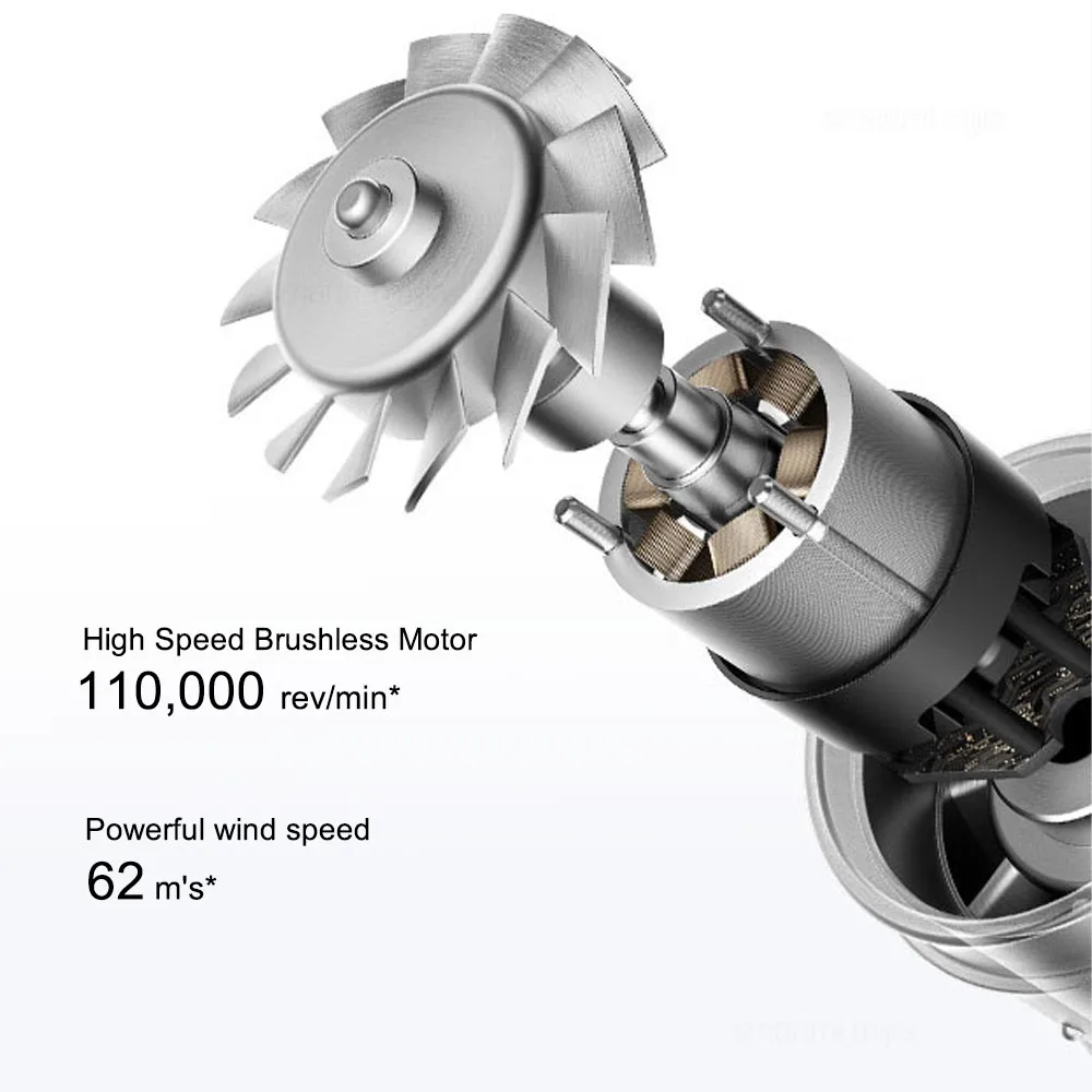 * 110,000 rpm قوية فرش السيارات ، سريع تجفيف الشعر في 2 دقيقة.